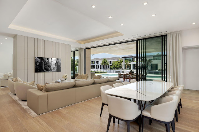 Boca Raton, FL. Expertly designed and meticulously crafted by an award-winning team of professionals, this waterfront abode is outfitted with premium wood finishes and accents, gleaming bespoke amenities, and expanses of floor-to-ceiling windows and sliding glass doors.